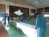始まりました。講師の方に来ていただき、毎回指導を受けます。今日は、礼法の話や、柔道の着方の指導を受けた後、準備運動、基本的な「受け身」について指導していただきました。