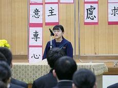 3学期が今日から始まりました。始業式では代表生徒2名が学習面や生活面について新年の抱負を発表しました。3月末で西門川中学校は閉校するため、2年生は4月から門川中学校の3年生になります。そのことを考えながら部活動の目標も発表しました。3年生は高校入試が控えているので「志望校合格」のためにすることを具体的に発表していました。
