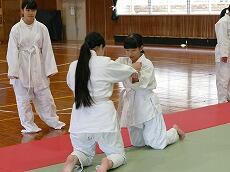 3学期の体育の授業では、全員が”柔道”を学習します。前の学年でも学習しているので、今日は寒い体育館に畳を敷き、久しぶりに柔道着を着て、柔道を習っている生徒をお手本にしながら練習していました。