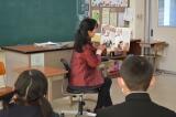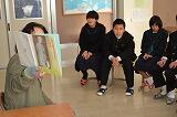 本日は、1年生に「あおばぶっく」の方が読み聞かせをしてくださいました。まずは、「てぶくろ」という絵本を読んでくださいました。この「てぶくろ」という絵本は、幼児用と一般用と2種類あり、本日は、幼児用を使って読んでいただきました。次に「おじぞうさまとこぶた」という本を読んでくださいました。生徒の中には身を乗り出して聞き入っている生徒もいました。今年の「あおばぶっく」の皆さんの来校は今日で終わりです。来年も、よろしくお願いします。この1年ありがとうございました。