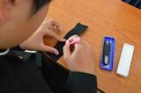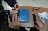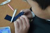 今、1年生は家庭科で教室のロッカーのネームプレート作りをしています。フェルトと刺繍糸との色合いを考えながらの、刺繍をしていました。どんなネームプレートができるか楽しみです。針で指を刺さないように丁寧に作り上げてくださいね。