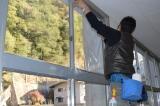 本日は、朝7時半より地震等で割れたガラスが飛散しないように、窓ガラスに飛散防止フィルムを張って頂きました。あってはならないことですが、「備えあれば憂いなし」です。