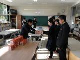町社会福祉協議会から依頼されていた、募金を社会福祉協議会の方に生徒会役員がお渡ししました。少ない金額ではありますが、町のために使っていただきたいですね。