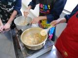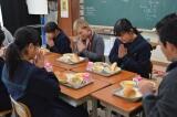 2月6日朝、また一段と冷え込みました。我が校の調理室の温度は6度でしたが、鍋にお湯を沸かして暖をとりながら調理実習をしました。あったかいシチューで、できあがりは最高で「これなら家で作れるね。」の声が聞かれました。肉のうまみや栄養分の流出を防ぐ手立て、肉を長く煮ると柔らかくなる等を体験し感じ取ることが出来ました。煮込む間、おやつも作って食べました。