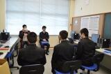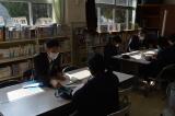 校長室では、生徒6人に対して、面接官3人で集団討論の面接を行いました。