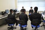 コンピューター室では、生徒3人に対して、面接官2人で集団(質問)の面接でした。