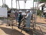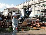 宮崎機械技術センターでは、材料試験室で高速道路の支柱につかう太い金属の強度を測る万能材料試験機を見せてもらいました。