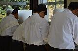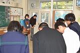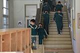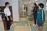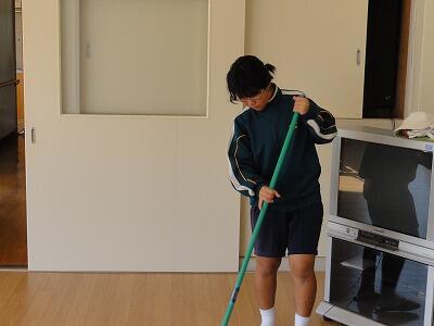 本校は、全校生徒数が25名ということで、清掃場所の割り当て人数は1~2名と少ない中で行っています。そして、10分間の清掃時間で清掃を行うことはとても大変です。一人でも取り組み状況が悪いと終わりません。ですから、無言でてきぱきと行っています。