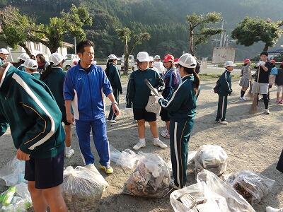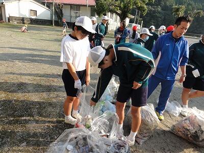 小学生、中学生を7班に分け、各班が地域の施設(上井野公民館、地域活性化センター等)の清掃や道路沿いのゴミ拾いを行いました。地域の方も、各班に同行しての実施で、地域の方と児童生徒の交流も図ることができました。クリーンアップ作戦終了後の児童生徒はさわやかな表情をしていました。