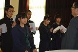 推戴式が終わったあと、英語検定の合格証明書の授与を行いました。様々な検定試験に挑戦して、多くの資格を取得してほしいと思います。