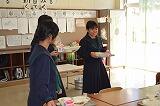 本日、5・6校時に3年生の調理実習がありました。今回は「『弁当の日』に必ずハンバーグを入れる」というねらいで、ハンバーグを作りました。たまねぎのみじん切りも日ごろからよく手伝っているのか、とっても上手にできていました。空気抜きの手さばきも大変上手でした。焼き終わって竹串を刺してみると、肉汁がたくさん出てきておいしいハンバーグができたのがよくわかりました。実際に食べてみてもおいしく出来上がっていたようです。さーて、今回の実習を生かして、おいしいハンバーグを「弁当の日」にも作ってきてくださいね。