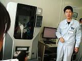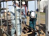 宮崎機械技術センターでは、材料試験室で高速道路の支柱につかう太い金属の強度を測る万能材料試験機を見せてもらいました。