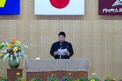 今日は門川町副町長 金丸隆康様、教育委員長 久保廣良様をはじめ、多数の来賓のご臨席の下、第64回入学式を挙行しました。