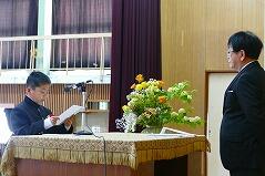 今年の入学生7名は、学級担任の氏名点呼にしっかりと返事をし、晴れて本校の一員となりました。式では、校長式辞や来賓祝辞に続き代表生徒による歓迎の言葉や歓迎の歌、そして新入生の誓いの言葉がありました。