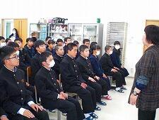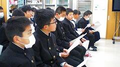 今日は高校の入学式がありました。入学式を終えた3月に卒業した生徒が真新しい制服を着て、学校にあいさつに来ました。