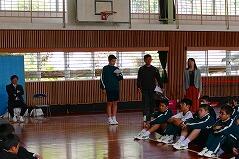 今朝は生徒集会も行い、生徒会役員からは今月の取組として「立ち止まってのあいさつを習慣にしよう」という呼びかけと生徒総会までの流れ説明がありました。また、9月の「小中合同運動」、10月の「小中合同学習・文化発表会」に向けたスローガンの募集についても説明していました。