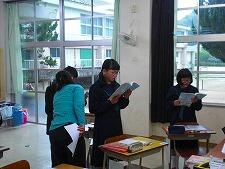 先週入学した1年生の国語の授業では、教科書を手に持ち、声を出して読んでいました。