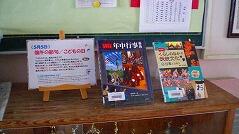 門川町教育委員会から、学校図書館支援事業として支援員の方を派遣してくださり、西門中には毎週火曜日に来てくださいます。今週は、職員室前や図書室前などの子どもたちが目をとめる場所に季節や行事に合わせた本を紹介してくださいました。