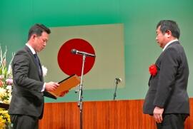 開会式の後、「かどがわ4か条」の取組状況についての報告、門川中PTAの実践報告、また、長年にわたって町Pに貢献されてきた門川中学校の 横山幸三さんへの特別功労賞表彰。