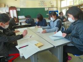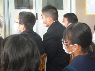 担任の先生の話、また、学年の先生方から激励がありました。最後に、高校別に分かれての確認を行いました。