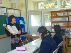 その後、先月に引き続いて、1年生の発表。最後に図書館担当の山本先生より、図書の返却についてのお願いがありました。