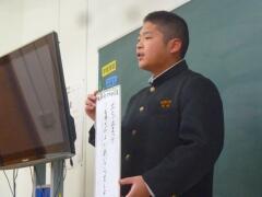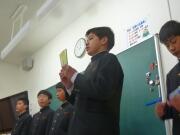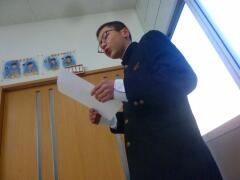 生徒会長の松田君より、「あいさつをがんばろう」という呼びかけ、またアンケート調査についてのお知らせがありました。