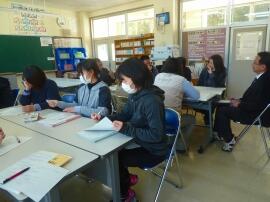 そして、校内では、放課後、今年度最後の「小中合同研修会」を行いました。