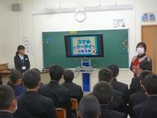 今日は6校時に、NTTドコモさんより講師に来校いただき、全校生徒を対象に、正しい使い方を中心に話をしていただきました。