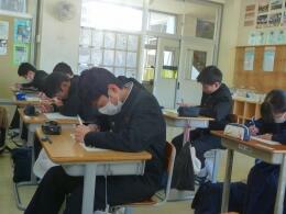 既に、私立専願あるいは県立推薦で決まっている人も含め、3年生全員で残り2週間を頑張り抜いてほしいと思います。受検はチーム戦、団体戦です。