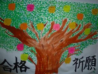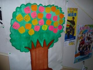 階段の掲示板には、1,2年生が書いてくれた「受検、応援の樹」も掲示してあります。