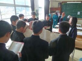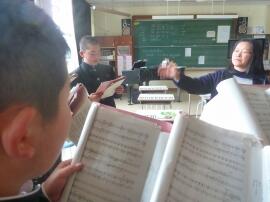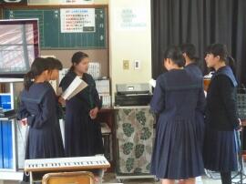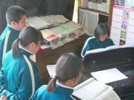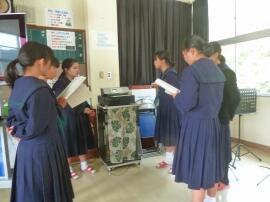 今日は、ソプラノとアルトパートの練習が音楽担当の金丸先生の指導で行なわれていました。卒業式前日の3月15日まで、練習は続きます。