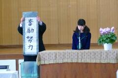 その後、2年生は一人ずつ、「私の座右の銘」を示し、自分の思いや願いを発表してくれました。さらに全校生徒による合唱。