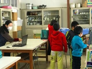 昼休みになると、先ずは中学生、そして小学生が町立図書館から持ってきていただいた本を借りにやってきます。