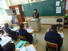 4校時、1年生教室では「阪神大震災」を資料にして道徳の授業が行われていました。
