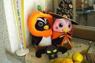 (今日はハロウィ-ンです。玄関で来校者を迎えている”かどっぴー””がわっぴー”も仮装していました。)
