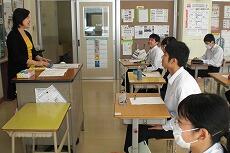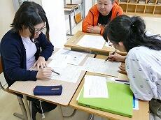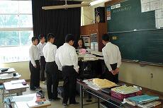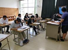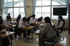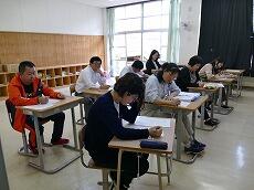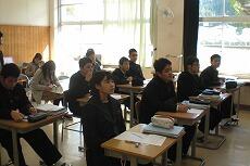 子どもたちの学力を高めるためには毎日の授業が重要です。西門川中では”授業力を向上する”ために、年間2回の研究授業を全員が行います。先日の職員研修では、次に研究授業をする先生が、本校の先生を生徒として模擬授業を行いました。久しぶりに受ける数学の授業は”生徒”役の先生たちにとっても興味が高まるもので、真剣に問題を解いたり、グループで話し合ったりしていました。