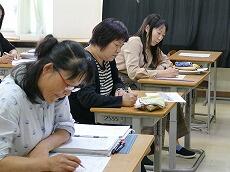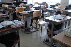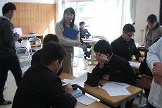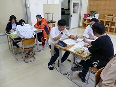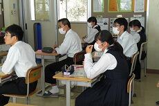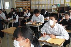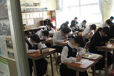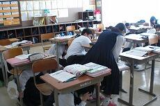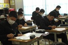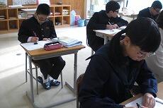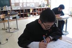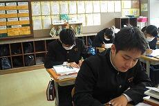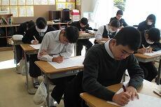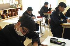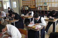 2年生が読み聞かせをしていただいている時間、隣の3年生の教室では高校合格のために朝の学習をしていました。
