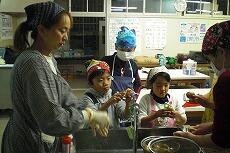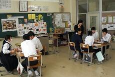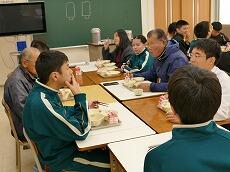 みんなで片付け、集合写真を撮ったあとは給食を食べて交流しました。