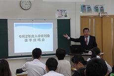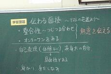 今日の3年生の教室では、高校入試で多くの学校で行われる”面接”について勉強していました。指導していたのは進路指導を担当している副担任の先生です。今日の3年生はいつも以上に真剣な表情でした。