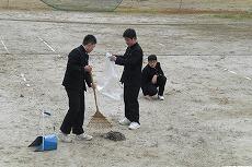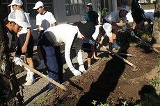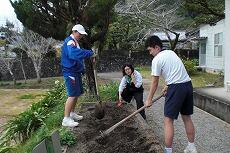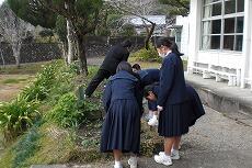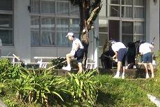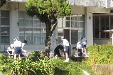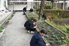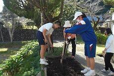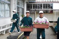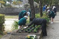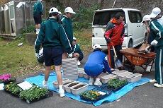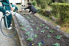 西門川中では、毎年2回の花壇整備を自分たちの手で行っています。今日は花壇とプランターの花を抜き、耕したりプランターを洗ったりしました。今月末にはパンジーやノースポールなどの苗を植えます。