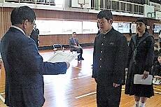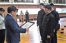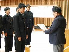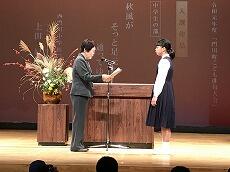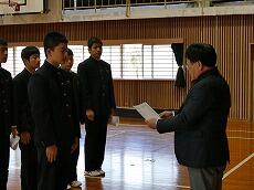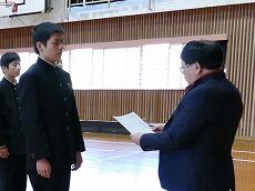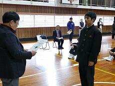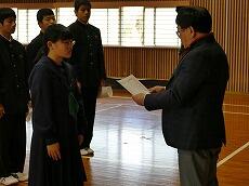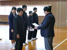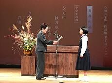 門川町子ども俳句大会の表彰式が行われ、西門川中からは3名の3年生が表彰されました(今日の表彰式には2名の生徒が出席しました)。