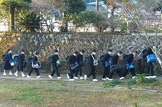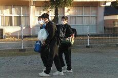 12月6日(金曜日)は参観日で、小中合同長距離走大会も行います。今日の体育の時間に試走を兼ねて実際にコースを走りました。生徒の安全を確保するために、先生たちも実際に当日の担当場所につきました。
