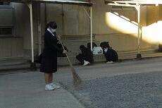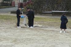 今朝の気温は5℃。この秋いちばんの寒さでした。学校の近くにある山茶花(さざんか)は赤や白の花を咲かせています。今月の生徒会環境委員会では、全校生徒で「朝の清掃活動」を行っています。いつもは正門付近や運動場で「朝のボランティア」を行っていますが、今月は西門川郵便局横や体育館横のお寺(勝蓮寺)の草取りや掃き掃除をしています。今日は寒かったことでしょう。