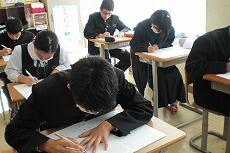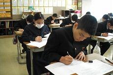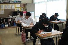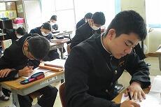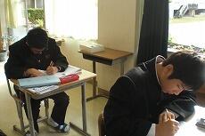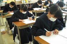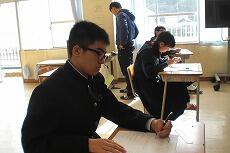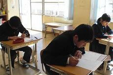 西門川中の今年のキーワードは「挑戦と変革」です。子どもたちは漢検や英検に挑戦しています。今日は全校生徒が「硬筆検定」を受検しました。仕事などではワープロソフトを使って文書を作ることが多くありますが、手紙やはがきを書いたり、テストを受けるときは手書きです。文字を正確に丁寧に書くことは社会人としても大切な要素です。硬筆検定をきっかけにして、子どもたちが読みやすくていねいな文字を書くことを期待しています。
