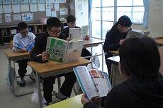 今月の学習委員会の取組として、「給食後の5分間読書」を行っています。この時間は、生徒だけではなく先生たちも教室で本を読んでいます。学校全体が静かで落ち着いた中での読書は、読書の機会を増やすだけではなく、集中力も身に付けられそうです。