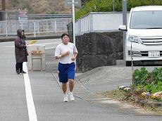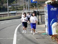 小学校低学年から始まり、小学校中学年、中学生女子、小学校高学年、中学校男子の順に距離を変えて走りました。学年が上の子どもたちは国道388号線も走りました。子どもたちのそばを通る車は速度を落として協力してくださいました。ありがとうございました。