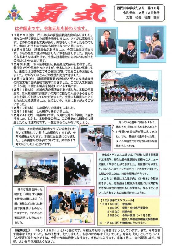 本Webページの著作権は、西門川中学校が有します。無断で、文章・画像などの複製・転載を禁じます。
