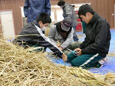 12月13日(金)は、上井野地区高齢者クラブの皆さんに来ていただいて「しめ縄づくり」を行います。