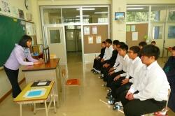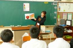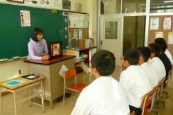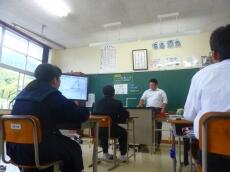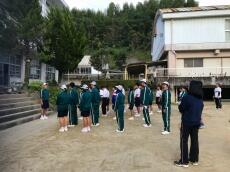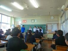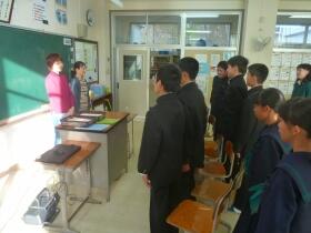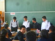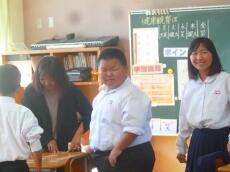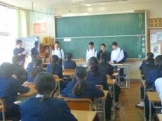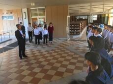 授業終了後、玄関先で、濱砂校長先生より、「今日の経験を生かして、自分の学校でまたがんばってください。そして、また、門川中に交流授業できてください。