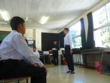 教室へ移動。1校時が始まる前に各教室で自己紹介。すると学級の代表の生徒が歓迎の